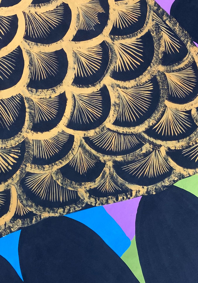記憶をもとに山や川の風景を描いていた私は遥か遠い昔の、個人の記憶よりさらに先のありえたかもしれない古代の海を描きたいと思った。