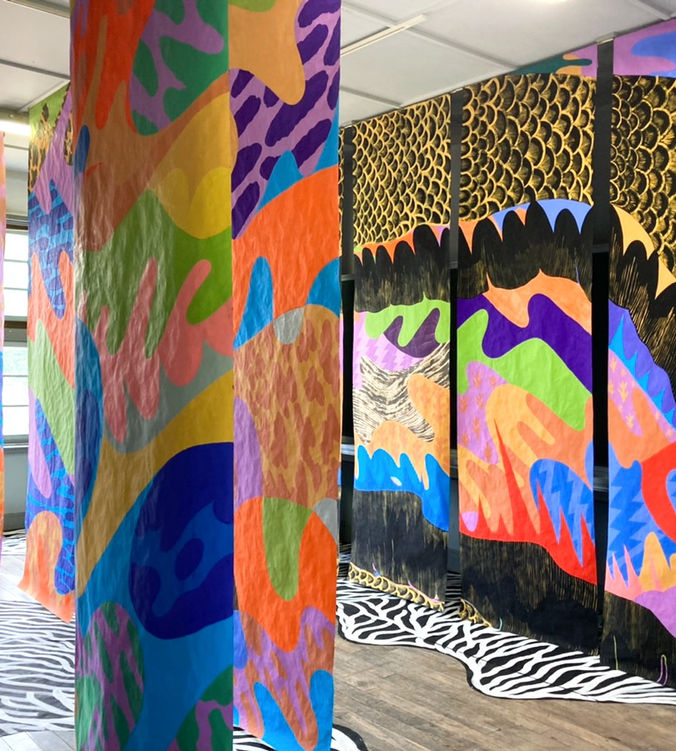 In 2019, during my first residency, I experienced the rain in Nakanojo, where large drops of rain suddenly fell, pounding down, and then stopped. That really left an impression on me. Her 2019 work "echo" is based on the shape and sound of waterfalls, but it also includes expressions of heavy rain.